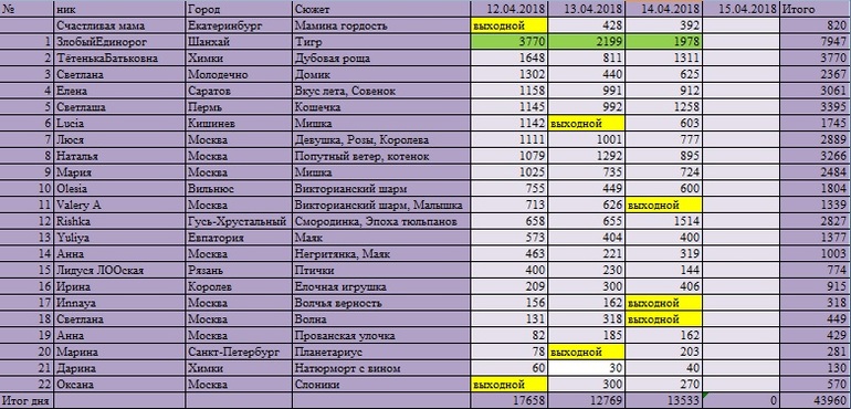 А я всегда свой результат только со своим и сравниваю)) Позорный-это для меня, а не для других, возможности у всех разные, для кого-то и 500 крестиков за день вышить- круто.