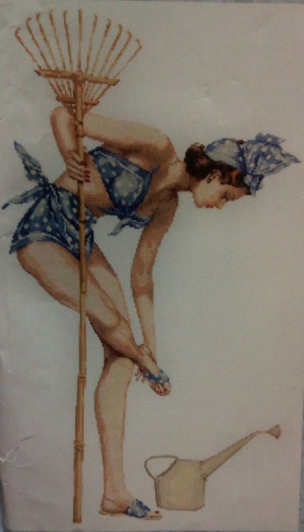 Следующая на очереди "Девушка с лейкой" от Кларт. Она для мужа)))) Канву я традиционно заменила с 14 на 18.