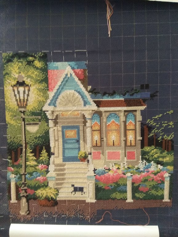 Всем привет! Заставка красота! Алиса просто прелесть, домик элегантная классика! Молодцы девочки, поработали на славу! Вышивалось еле еле, занялись садом- огородом, свежий воздух рулит! А ещё пьянит , и вернувшись домой хочется полениться))) а так нужно окончить работу в мае) мое было стало