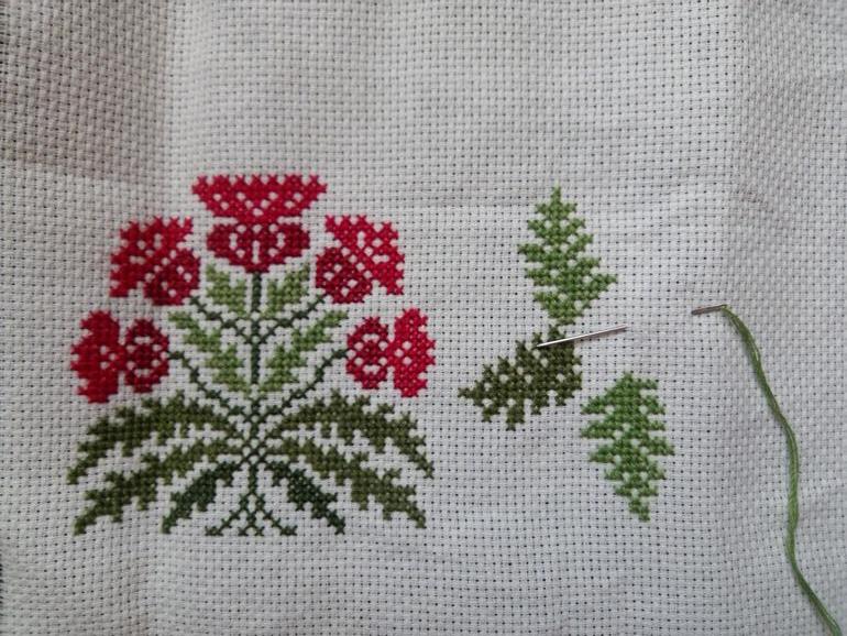 Вышиваю по-прежнему с огромным удовольствием! Это моя первая работа от Золотого Руна и точно не последняя. Схема-идеальна для меня, крупные черно-белые значки, все логично. Только нарезка ниток коротковата, но к этому можно привыкнуть.