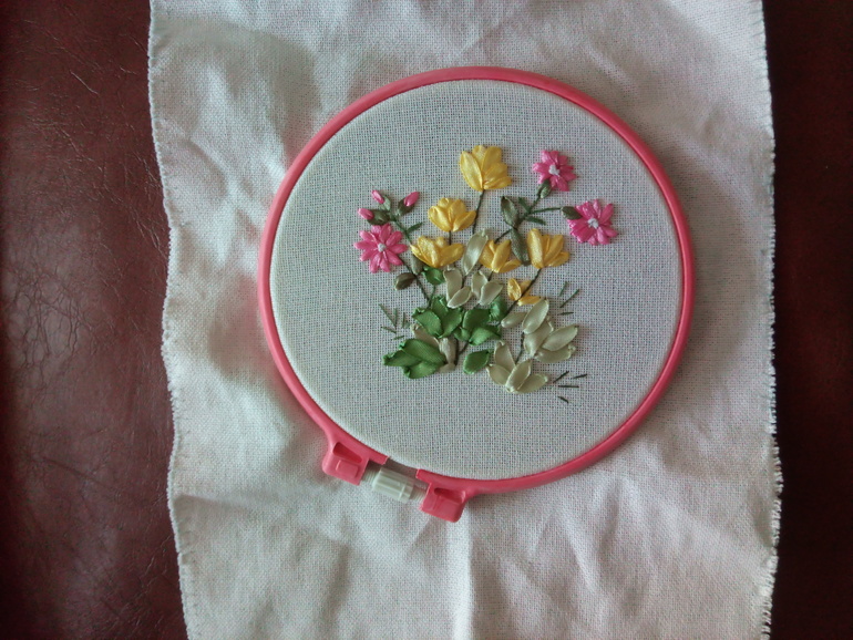 И ещё хочу похвалиться её вышивкой лентами, это уже Алисочка сделала, тоже дз по технологии.