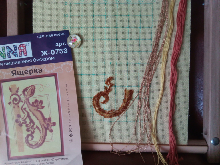 Ещё я начала вышивать бисером яшерку, она для дочки, вернее это типа она вышивает))), домашка по технологии. Бисером она вышивать умеет, но времени сейчас нет на вышивку, да и зрение у неё не айс... вобщем я за неё.
