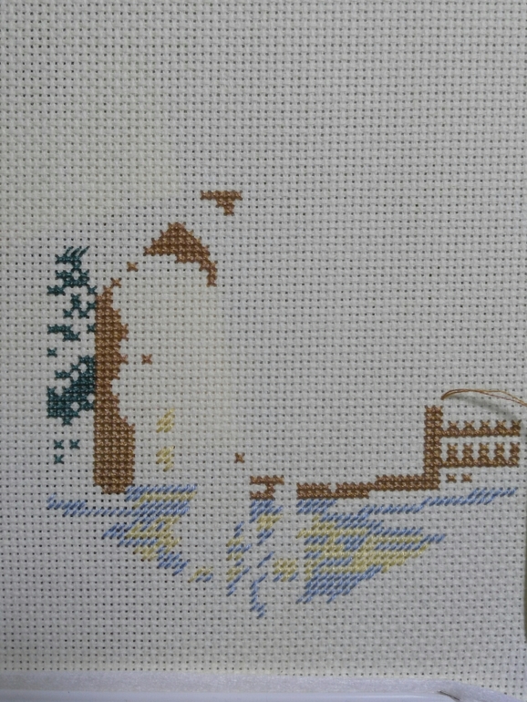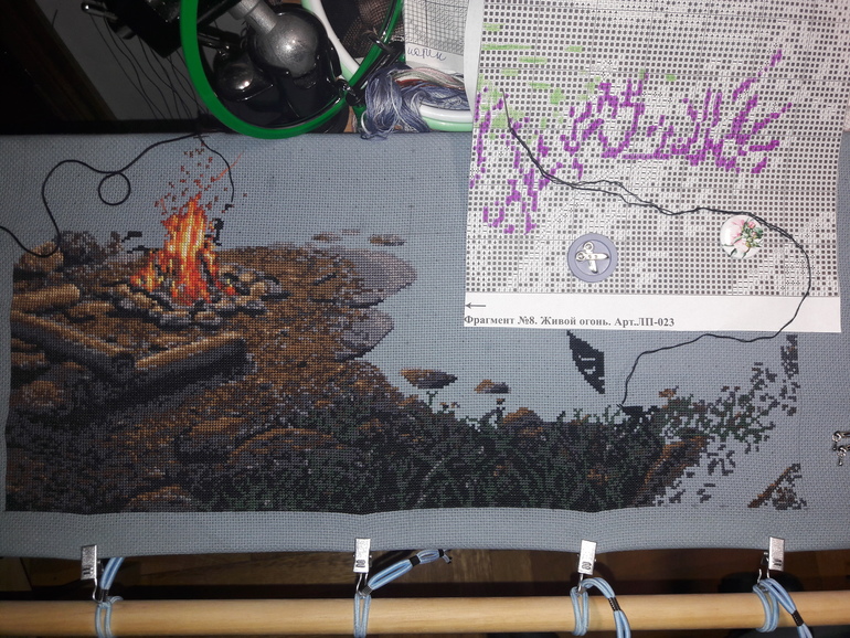 Ну и по вышивке-вышила небо и поковыряла немного зелень