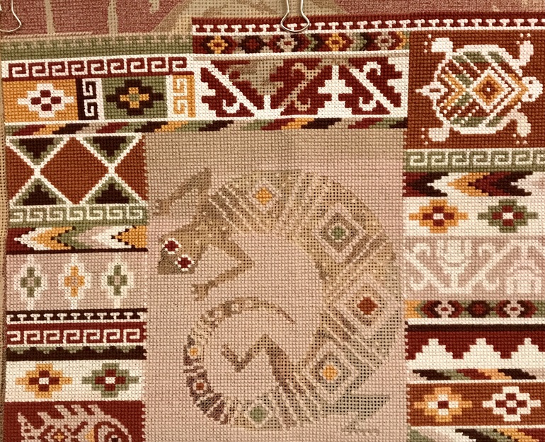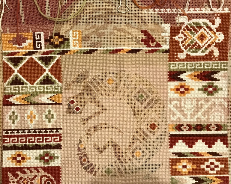 Привет! Я весь день надеялась что повышиваю и закончу подушку вверху, останется только ящерица. Но сегодня ходили к стоматологу с малышом. И по дороге у меня самой развалился мой молочный клык, который я берегла аш до 37 с половиной лет. Это повергло меня в жуткую депрессию, и что теперь делать непонятно. Завтра иду к врачу, поплачем вместе.
