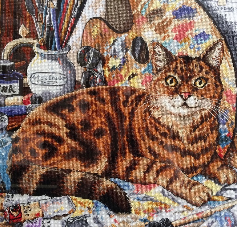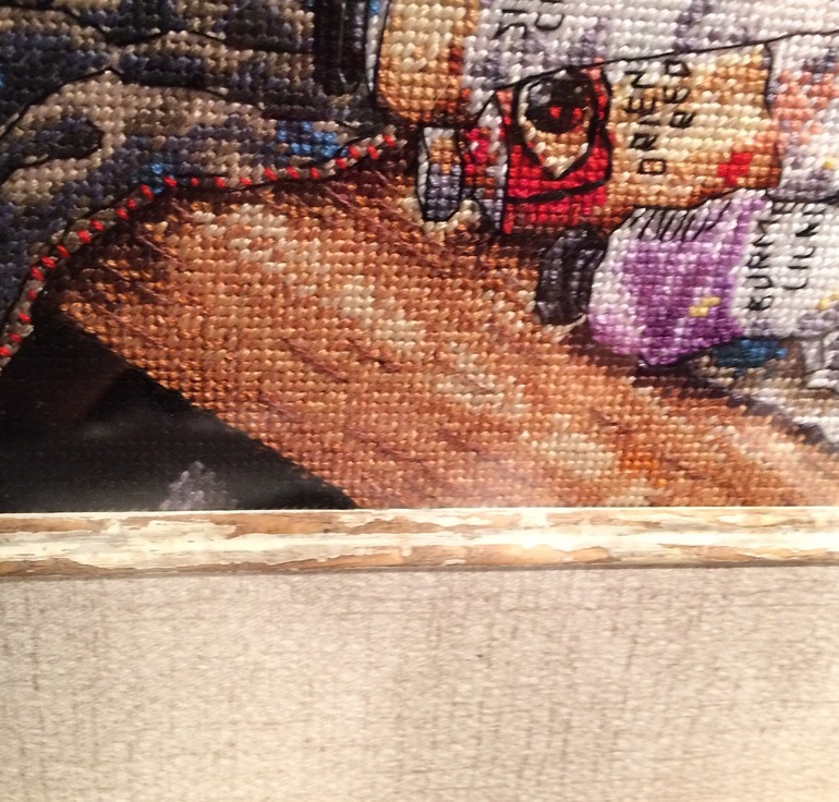 Какой славный котик!)) Оформление тоже на высоте! 👍🏼 Вы где оформляете? Ищу проверенную багетную мастерскую, а то лежит уже давненько моя вышивка, никак не оформлю...((