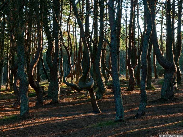 Это Куршская коса- Национальный парк на территории Калининградской области. С 2000 года он признан всемирным наследием ЮНЭСКО. Длинна косы 98 км. Она отделяет Куршский залив от Балтийского моря. На территории парка есть танцующий лес. Неизвестно почему деревья так крючит именно в этом месте. Они как будто танцуют. На первом фото одно дерево закручено в петлю. ЕЕ называют петлей дьявола. Говорят , что если пролезть сквозь нее и загадать желание, то оно обязательно сбудется. Проверено на себе, сбылось! Как раз былав этом лесу в туман. Жутковато. Как будто в сказочном лесу идешь, где водятся лешии и ведьмы.
