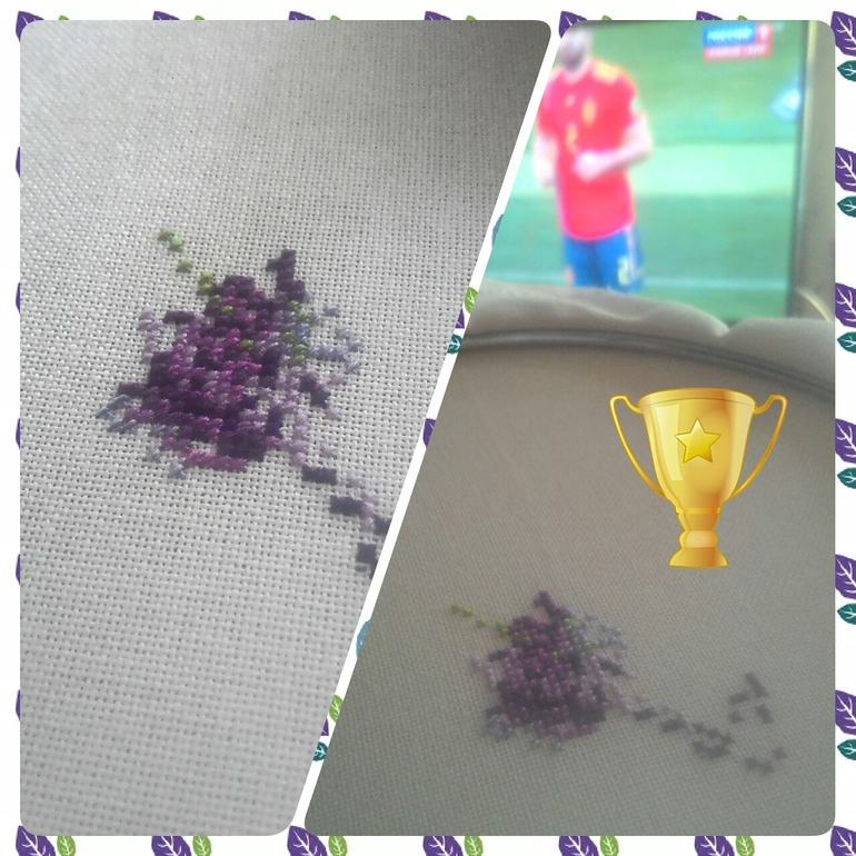 вышила мало, но тут не столько футбол виноват, сколько то, что дочка к бабушке поехала на лето, а я так скучаю, что не могу настроиться на хорошую волну. Думала, буду приходить с работы и вышивать-вышивать, а на деле прихожу, полчаса повышиваю и глаза слипаются, настроения нет, мне кажется, это тоска на мне так сказывается(