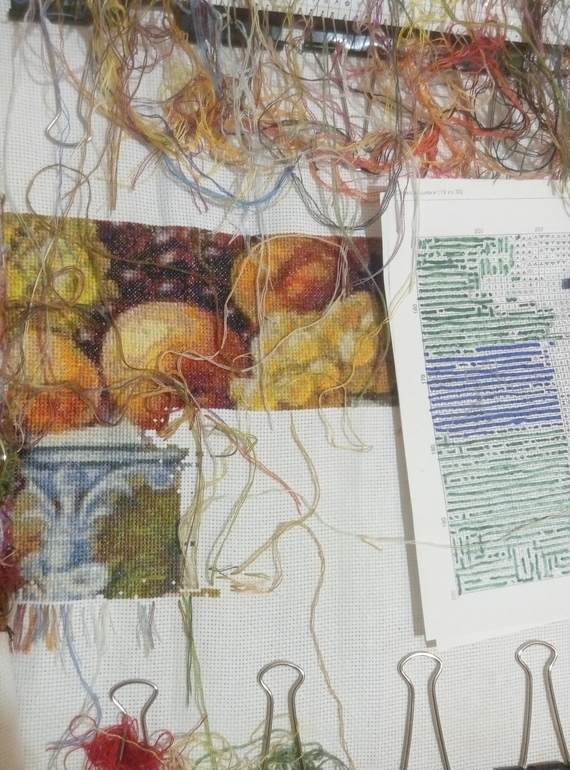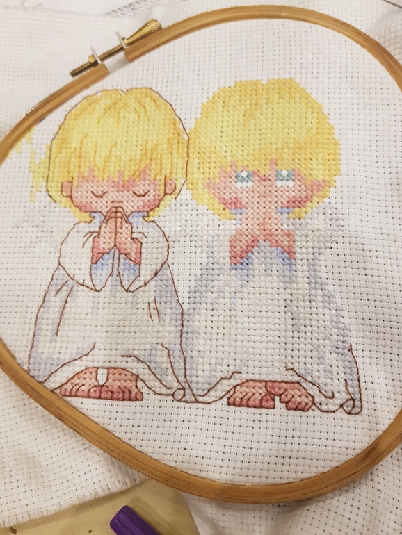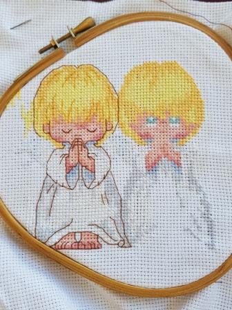 Чуть не опоздала, сон срубил.. За эти сутки у меня получилось 370 с учетом канвы, как и планировала - закончила ангелочка, теперь обшиваю беком. Заодно планирую уже захватить крылышки, а нимбы на самый конец оставила (впереди еще 1 ангелок)