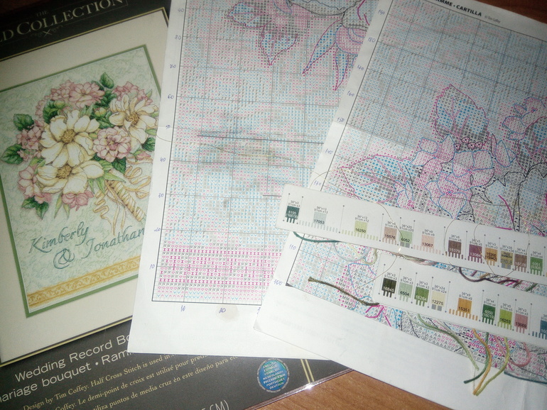 5.дим,букет невесты,чистая схема,в одном месте чуть стерлись несколько значков,образцы ниток для подбора,100 р.+почта бронь