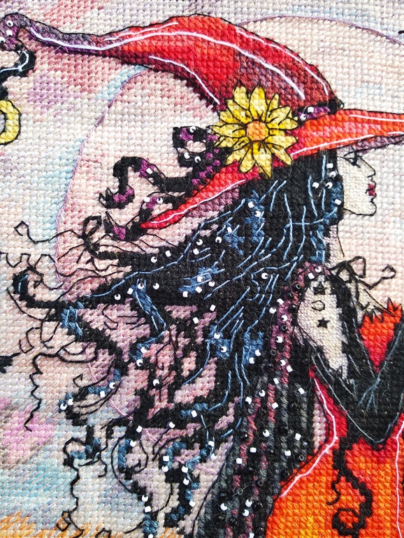 Личико вышито петитом. Нежное, гладкое ,молодое как положено у ведьмочек -на века ! Обратите внимание на актуальное брендовое тату ...Не наклейка !! Не стирается, не смывается .То же на века !