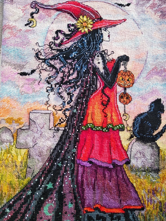 Ведьмочка она. Шила ее на прошлогодний конкурс" Осень Хэллоуин" работа шла просто замечательно, пока дело не дошло до бусин .Меняла их три раза .Пришивала и снимала, то размер не тот, то не смотрелись.... Черные вообще потерялись. Вроде как их и нет