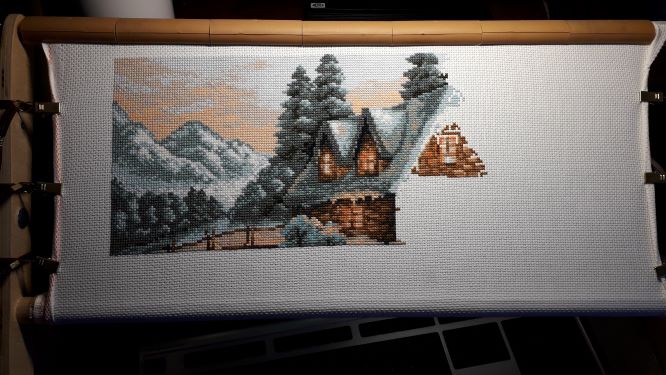 Я после долгой ломки все таки начала Ночное путешествие Санты. Все таки 10 этапов мне маловато для такой работы, думала две миниатюры шить, но не смогла устоять, руки зачесались и все таки взялась за него. Посмотрим, как пойдет.