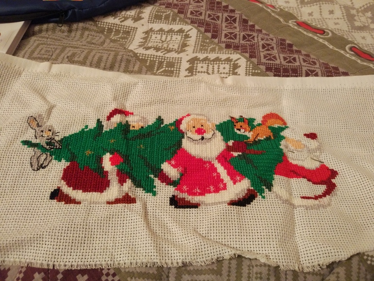В общем, пока мой набор не пришёл, пошла рыться в запасах. Нашла недошитых Дедов Морозов. Мне их отдала сестра, ей стало лень доделывать. Это была одна из её первых работ, и именно на ней, видимо, пришло озарение, что вышивка - это хобби не для нее)))