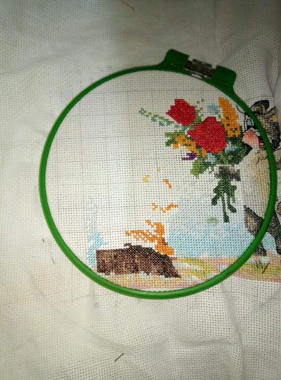 Вышиваю совсем почти ничего, вот только сегодня, пока дочку на рисовании ждала. Очень тяжко на 18 канве, да и темно там в коридоре. Если б не ВД, то и этих 50 крестиков бы не было
