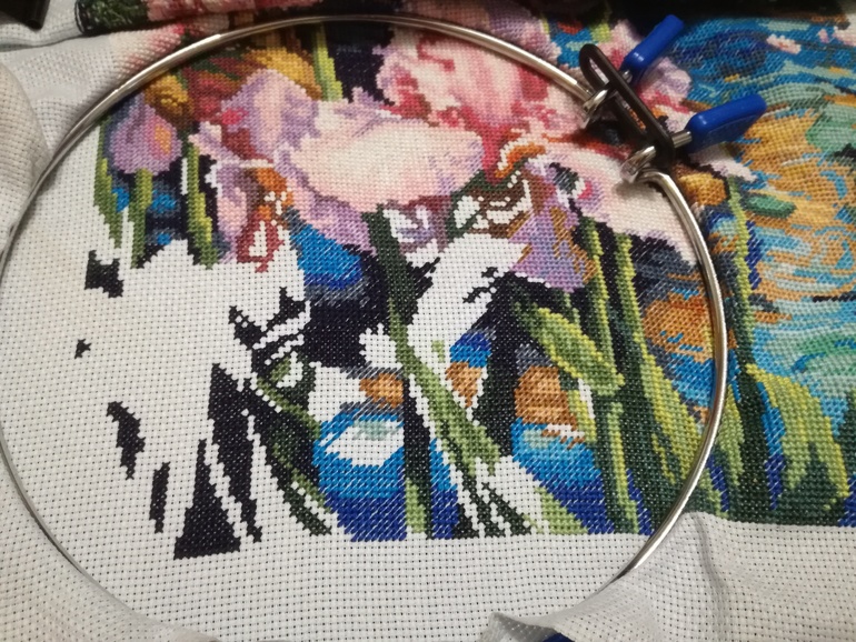 Всем привет! А я заболела, температура нет, но кашель сильнючий, поэтому опять повышивала совсем чуток, да ещё и на работу надо ходить. Завидую, кто на больничном вышивает, я за эти два выходных только отсыпалась. Завтра пойду к врачу схожу, послушаю что он скажет.