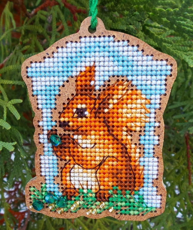 Потом вышила белку (тут не придерешься, у нее орехи изумрудные, все по Пушкину ))