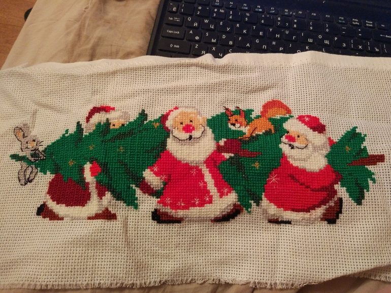 С оленями не складывается Через одну нитку они не смотрятся нужно решать с другой тканью Отложила