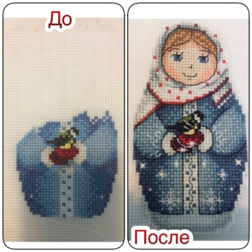 Ну и к вышивке: я закончила переднюю часть своей матрешке, очень она мне нравится, а уж сыну то как нравится - ходит и подгоняет меня, мол давай скорее спинку вышивай)))
