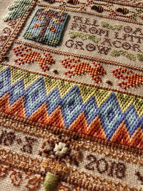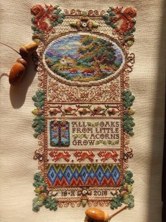 Вышивка крестомДевочки, всем привет! Дошли наконец руки/ноги показать конкурсную работу. Желудевый сэмплер, дизайнер Сэнди Ортон. Вышивала на льне, цвет Light Sand, 28 count. Кому интересно, прошу под кат.