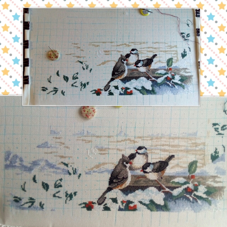 Вышивка он-лайнПродолжаем показывать наши успехи в зимних вышивках. Мы в середине совместника уже, все уже половинку вышили?