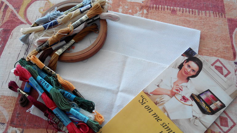 вышивать буду на белой мурано (нашла какие-то огрызки, даже сфотографировать постеснялась, на фото дублер)))