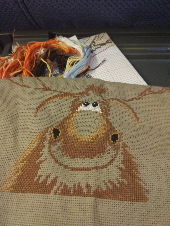 Всем привет! Уже 3 раз пытаюсь отчёт отправить...все выходные в дороге, с интернетом проблемы всю дорогу(( Если честно, лосика вышивала тольео часа 3-4 совокупно, вся неделя была посвящена другой вышивке. Это подарок мужу на ДР, наверное, подробно отдельным постом напишу. Уж очень интересный и необычный для меня опыт был...