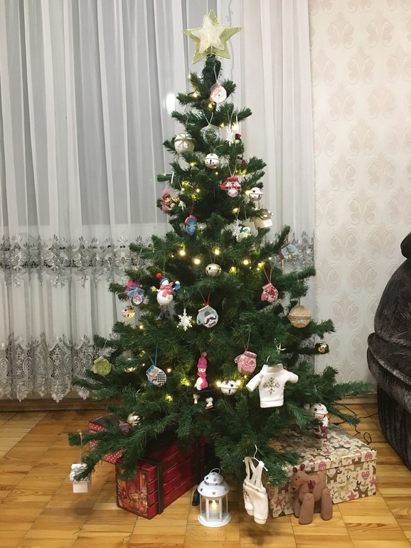 ну и елочку свою покажу , как и планировала , нарядила 19-го . Веселенькая елочка получилась , потом отдельным постиком у себя в дневнике расскажу о ней , есть что показать , только надо еще варежек посшивать и повесить и пофотографировать красиво )