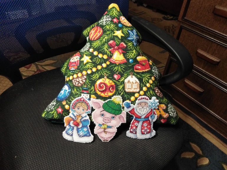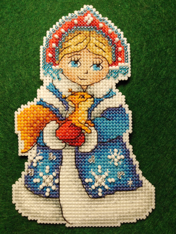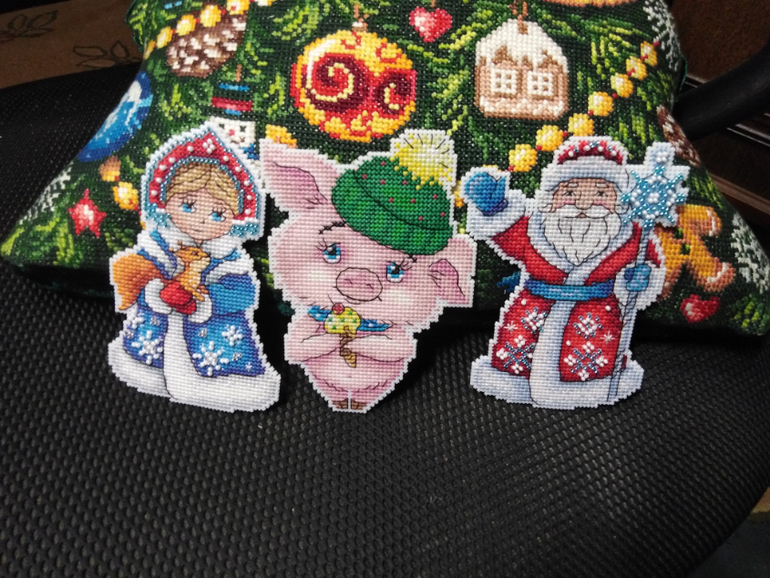 Красота!! Я тоже эту троицу вышила))) пыталась у Снегурки реснички вышить, но получалась она у меня как девушка с пониженной социальной ответственностью, поэтому оставила так))))