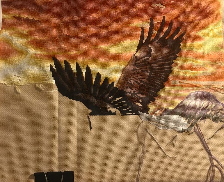 Не могу найти фото до, вот что получилось на этой неделе. Выросла гора и зашила пустоты в крыле орла , в принципе, довольна результатом, учитывая, что неделя вся рабочая