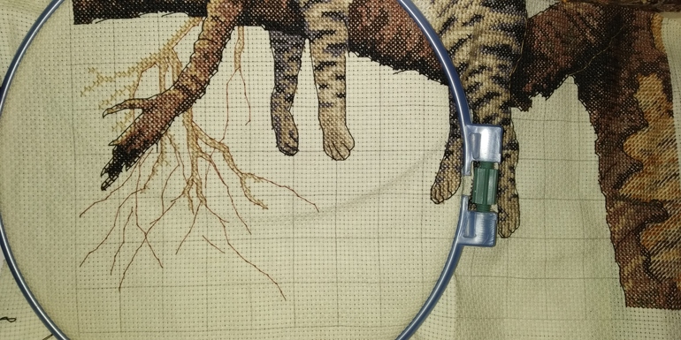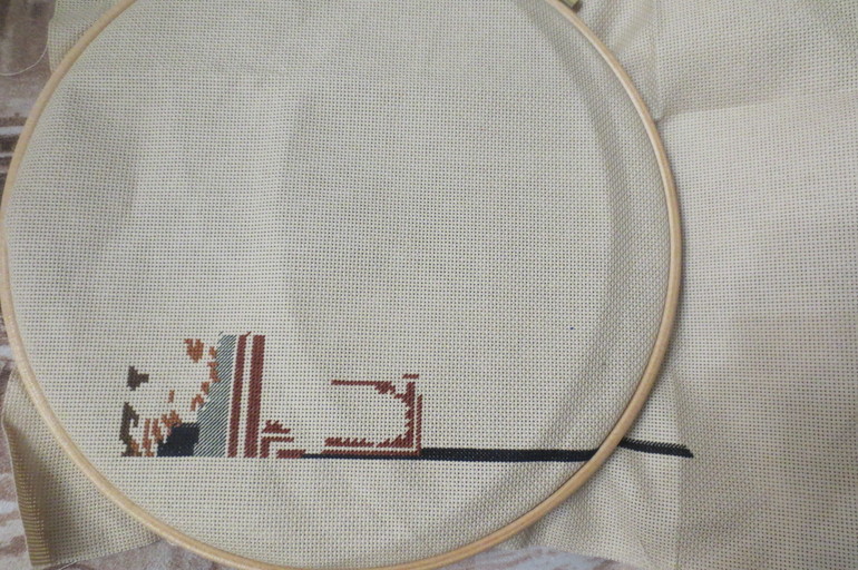 Ну и накосячила с бэком в коте, то что надо было вышить в 2 нити, я вышила в 1... Ладно хоть цвет верный, завтра буду дублировать поверх того что вышила =(