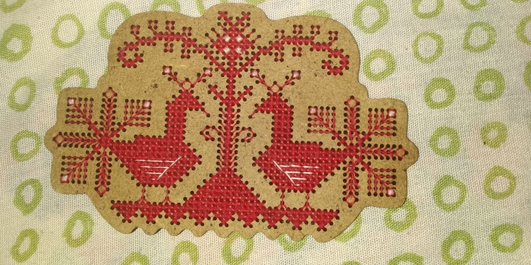 А по вышивке начала оберег птицы фирмы созвездие, ну и играючи закончила одну сторону, настраиваю отшить вторую (терпеть не могу дублем вышивать)