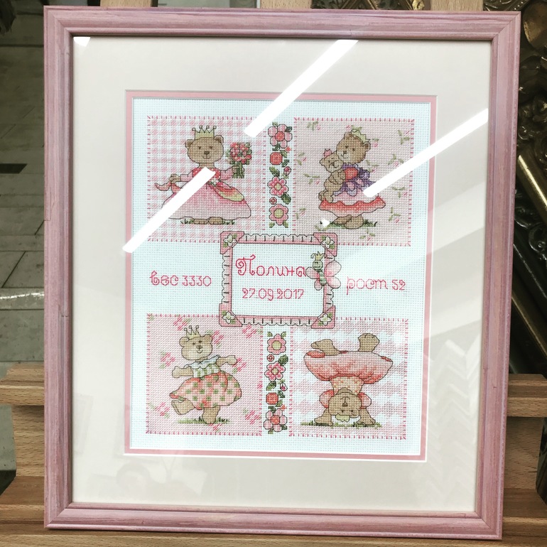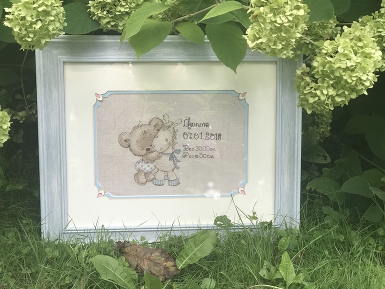 2) Метрика понравилась мне свой не избитостью. Есть такие Наборы, которые хочется вышить сразу и сейчас! Вышивала с большим удовольствием и любовью для своей будущей внучки думала, вышью и пусть лежит, ждёт своего часа! Но решила, что лежать она так может ещё ооооочень долго и подарила одной маленькой девочке