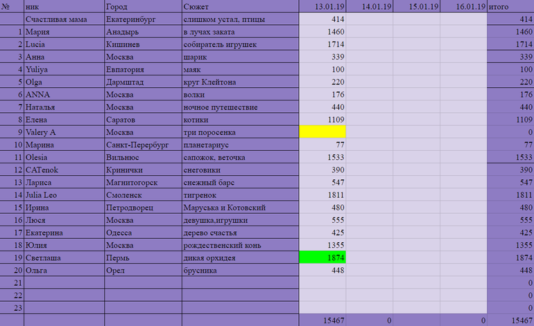Игра "Вышивальный забег"Всем привет! Я вот почему то даже не удивлена что Лера опять пропала... Ну и ладно, остальные все молодцы и как говорится: семеро одного не ждут! Лидером дня сегодня стала Светлаша с результатом 1874 крестика, за ней буквально наступая на пятки, бежит Julia Leo c результатом 1811 крестиков и замыкает тройку лидеров Lucia с результатом 1714 крестиков. Молодцы! все вместе мы вышили 15467 крестиков.