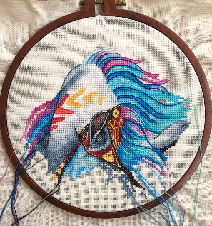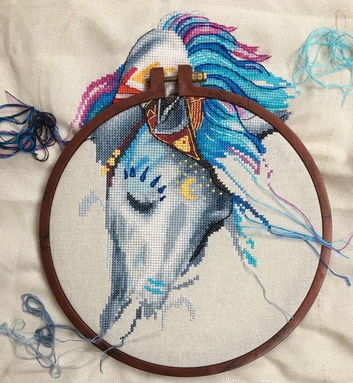 Шикарная лошадка! Цвета на фотках такие яркие! И канва классная. Я вот немного жалею, что белую выбрала. Хотя у меня только белая равномерка и была