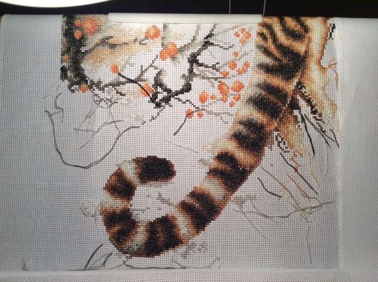 Крылья? Ноги? Главное - хвост! Всю неделю вышивала хвост! Собственно поэтому и припозднилась с отчетом, хотела его довести до завершения, то есть до самого кончика :-) План на следующую неделю - фон для хвоста :-))) По поводу самобалования: мое самое-самое - это позволить себе периодически подрыхнуть полдня. Ну вот не знаю я, ничего так не повышает уровень моего счастья, как возможность проснуться САМОЙ около полудня, без будильников и домашних шумов. Нет, я конечно встаю в 7 утра, выпроваживаю всех на работу и в школу и заваливаюсь обратно. Когда просыпаюсь через часа 3-4, с потягушками и позевушками, счастье меня наполняет, чувствую себя королевой, с правами, но без обязанностей :-))) Когда то давно, до материнства, дрыхла так по выходным, так как будни, естественно, проходили на работе с самого раннего утра. Дети, даже сейчас, когда подросли, все равно в выходной встают не позже 8.30, а для меня это прям ни свет, ни заря... Так что по будням теперь, когда все в школе, так вот отрываюсь :-) А это, его величество, отрощенный хвост: