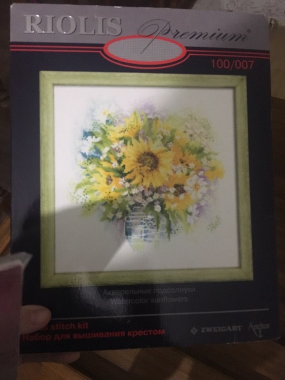 Я перегорела потому что разочаровалась в цене в свое время... Ведь реально если не интернет магазин то в розницу акварельки сотвори сама стоят 650р, а этот премиум 1700-1900р! А по факту канва, одинаковая, нитки анкор, такие же как и в обычных наборах, разобраны на такие же картонные органайзеры. Даже схема такая же. Но вся разница в названии премиум и в красивой картонной коробке... Хотя дименшенс этим же грешить в плане голдов. А так эти подсолнухи я хотела вышить в пару к пионам