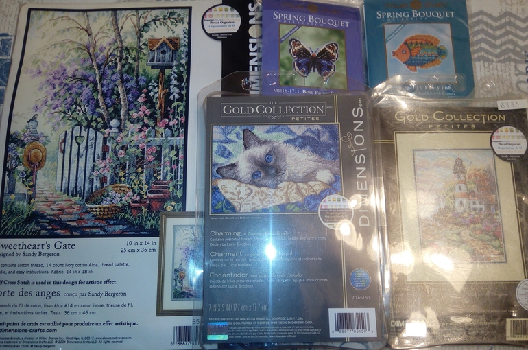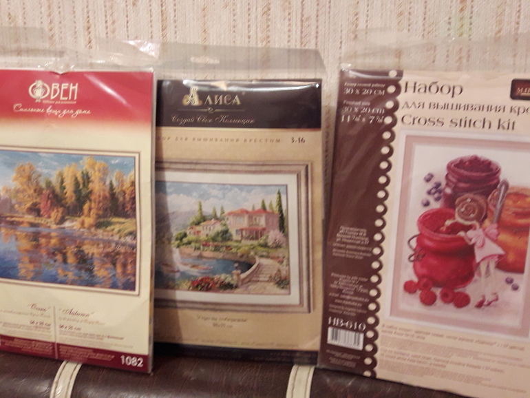 Запасов у меня две коробки с наборами и коробка с канвой-нитками))… покажу то, что хочется в первую очередь вышить.