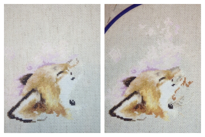 Девочки всем привет! я не вышивала всю неделю, как то не получилось, большая рама с вышивкой лешит сейчас далеко из-за ремонта, вышивала на пяльцах другую работу из звериного совместника.