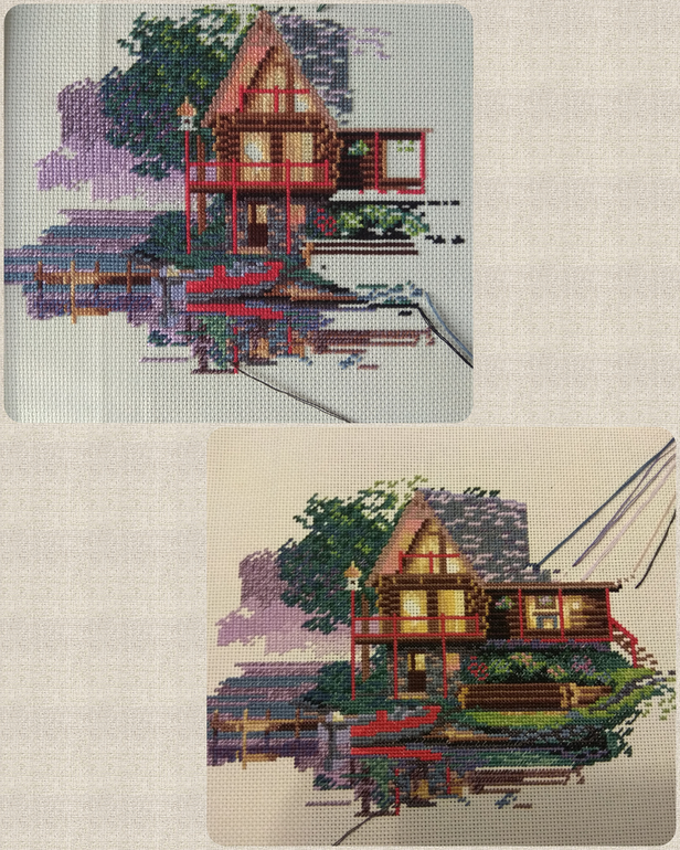 Привет всем! Забыла отчитаться. Причем подготовилась еще в воскресенье и... забыла. Я на той неделе сидела на больничном и захотелось чего-нибудь посложнее, поэтому посвятила себя самой сложной вышивке, что у меня была. Домик у озера от Дим. Брат давно подарил на ДР. Долго не могу ее вышивать, очень уж мелко и замороченно, хотя наличие полукреста немного спасает положение и результат очень нравится.