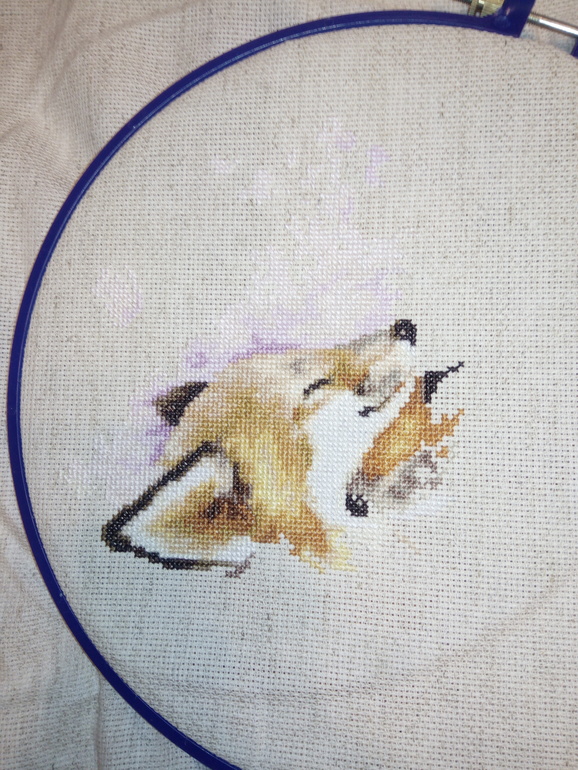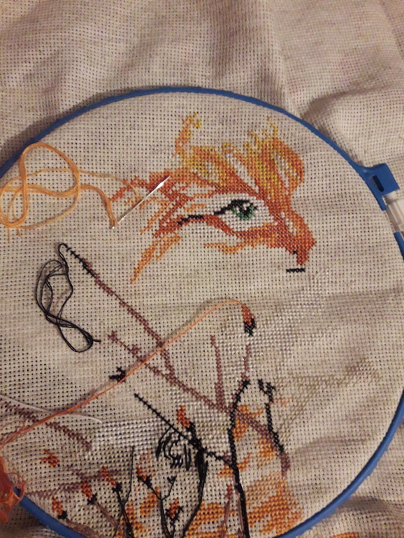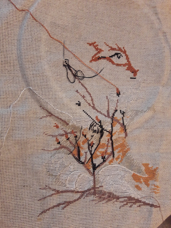 Кусище хороший вышила, но я посмотрела, сколько там еще этих камней... ох) Зато хвост посреди этой серой почвы продолжает веселить и радовать)))