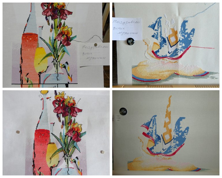 Всем привет. До последнего момента думала что смогу ещё что-то вышить, но увы=( было 2 возможности пока малой спал, но домашние дела никто не отменял, а ночью малой поздно угомонился и потом раз в час вскрикивал из-за зубов... Сейчас намазала ему десна чтобы перестал стонать и я смогла отчёт написать