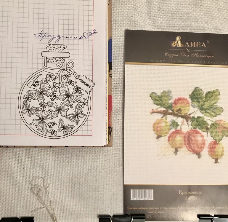 Привет. У меня только крыжовник. Бабочку немножко вышивала, завтра выложу. 444 крестика