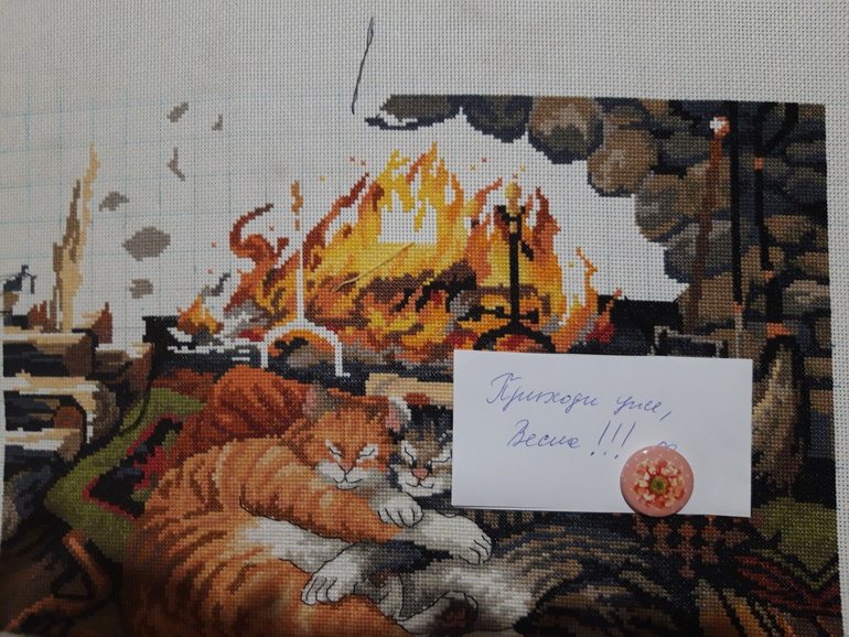 Привет, всем! я бегу со своими котами у камина, 18 канва