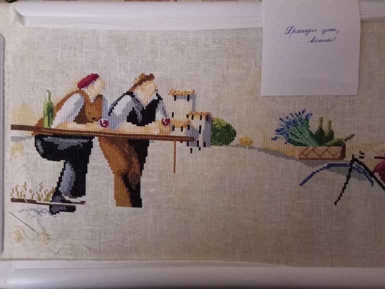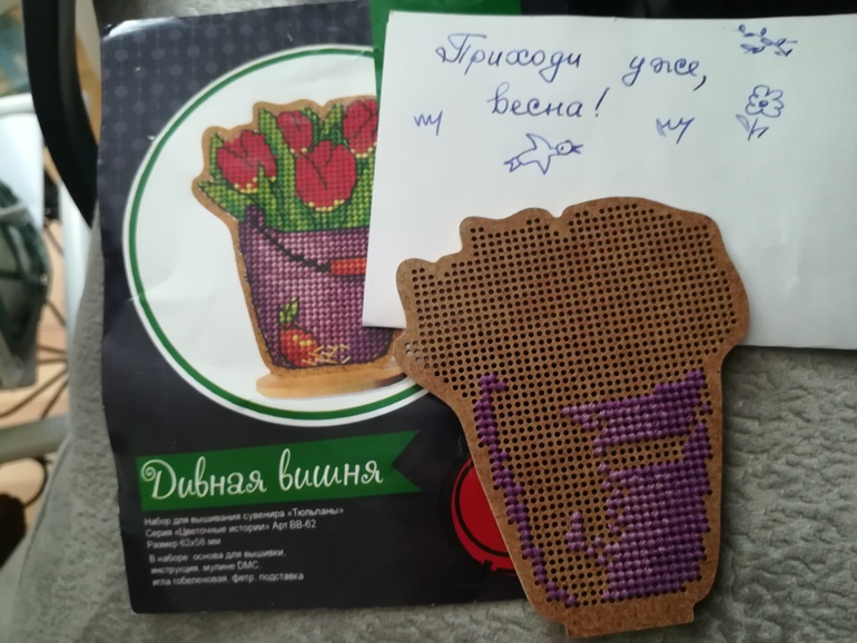 А если кресло не зайдёт, тогда начну совсем зазывать весну, вышивая тюльпаны