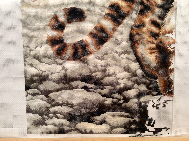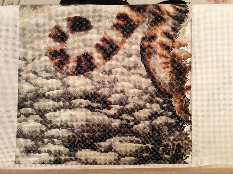 Ура! Забег помог добить мне этот кусочек, перематываю канву снова вверх, чтобы вышивать тигриную попу :-))) за сегодня 710