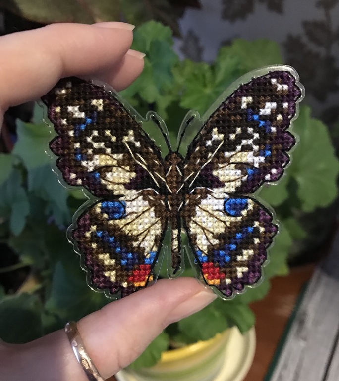 Привет. У меня тяжелая неделька. Ротовирус скосил всю семью и у меня из жизни выпал прошлый понедельник) потом я удалила зуб мудрости и теперь лечу то место, где он раньше был. От вечных обезболивающих я то ли сплю, то ли нет. И жду, когда же это все кончится) ну а теперь из хорошего: вышивка ползёт, вчера достала своего котика, стряхнула пыль и нашла схему с нитками. Буду вышивать. Ээээ когда нибудь. И хочу закончить закладку. Вообще не смотря ни на что этот вд у меня продвигается хорошо: хоть маленькие работы, но все таки заканчиваются). Готова ещё одна бабочка