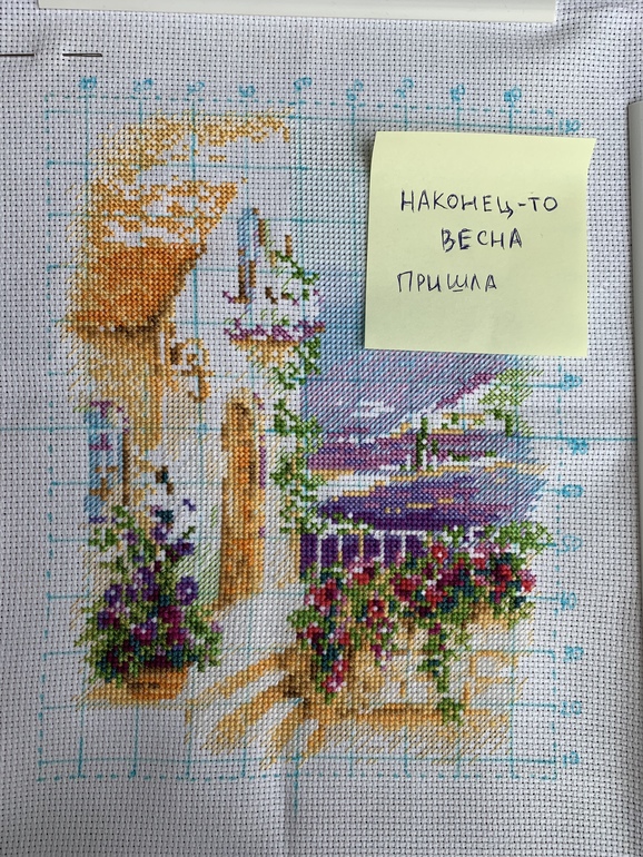 Всем привет! Я как всегда с прованской улочкой. Я что-то так сильно разболелась, надеюсь все таки удастся повышивать. Хотела взять что полегче, но решила не забрасывать эту. А то опять на год отложу.