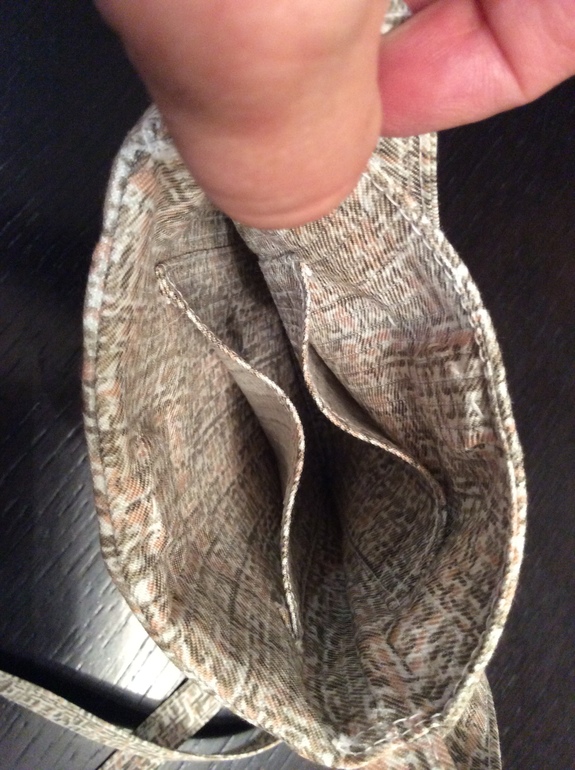 Внутри с каждой стороны ещё по маленькому кармашку: для денежки и для конфетки, чтобы даже в такой маленькой сумочке был порядок :-)))