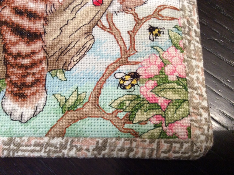 Вышивка крестомУже незнамо когда вышился у меня вот такой димовский весенний котик, дремлющий на цветущей яблоне. Но долго лежал в шкафу, хотя идея оформить его в летнюю сумочку для дочки была задумана сразу. И вот, наконец, сегодня я взяла себя в руки и подготовила подарочек-сюрприз дочке к завтрашнему дню рождения!