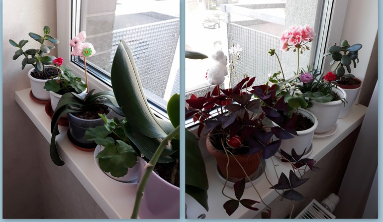 А это мой единственный подоконник, часть обитателей которого тоже отправится на свежий воздух, когда погода окончательно установится.